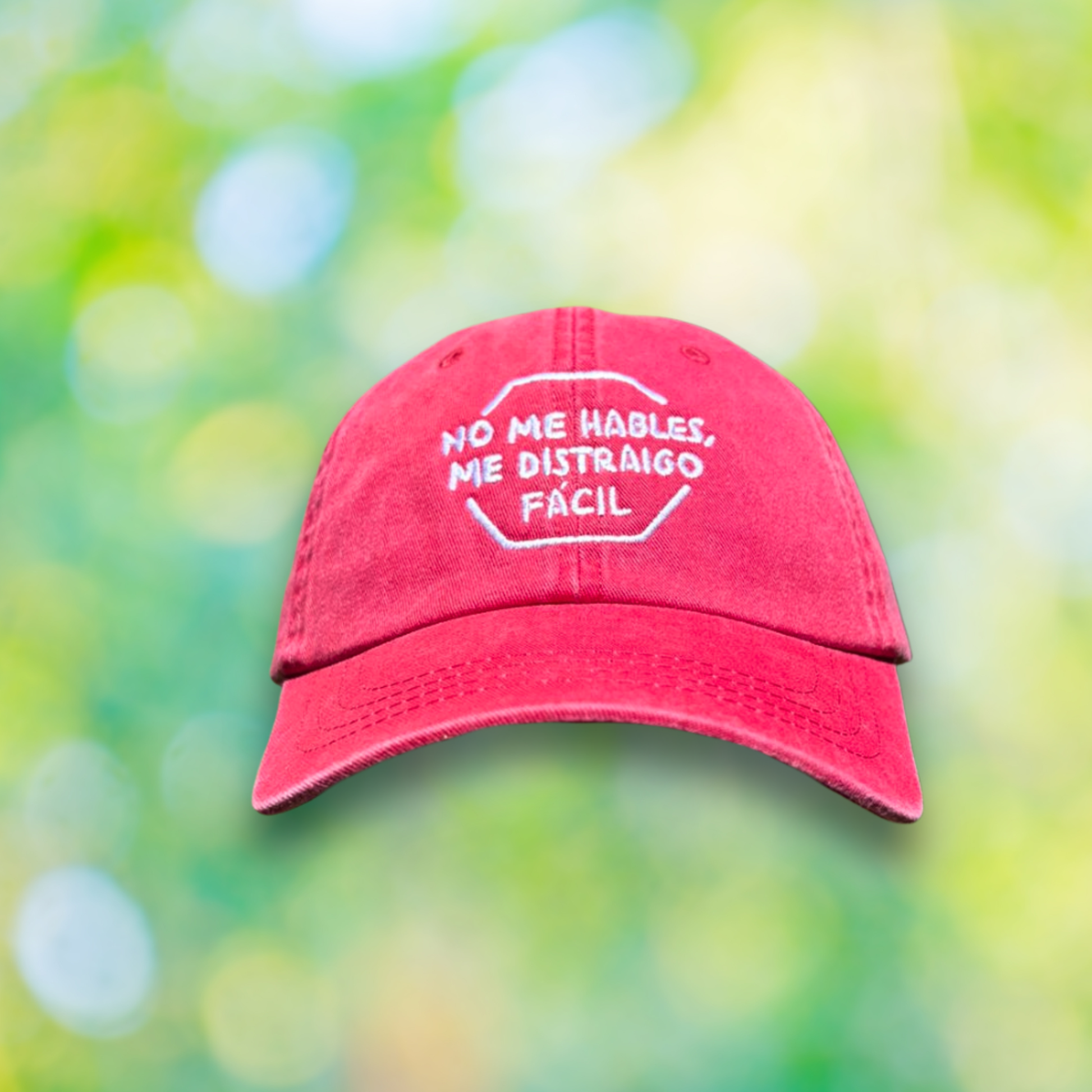 Gorra deslavada con un original diseño bordado. Su cierre de velcro autoajustable es ideal para cualquier tamaño de cabeza.